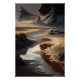 "Capture the Essence of New Zealand: Immerse yourself in the serene beauty of the South Island's rugged coastline with this captivating image. Bathed in the golden glow of a sunset, the sandy beach unfolds before your eyes, adorned with dark rocks and hues of brown sand. A gentle stream meanders through the landscape, its path leading gracefully to the vast expanse of the ocean. As warm sunlight casts long, enchanting shadows across the scene, you'll feel transported to a tranquil oasis of natural wonder. Perfect for those who yearn to bring the breathtaking landscapes of New Zealand into their home"