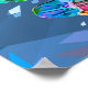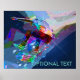 Super colors dans le style abstracted edgy of a skate boarder performing a cascade. Main figure is multi colored; background is collection of cut paper colored geometric pieces