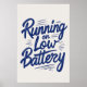 Une affiche de typographie manuscrite sarcastique avec l'expression "Running on Low Battery" dans un script de brosse libre. Parfait pour les amateurs d'humour, idéal pour les chambres, les bureaux ou les dortoirs.