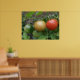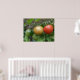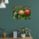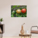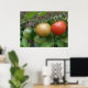 Cette belle affiche présente une photo d'un tas de tomates mûries, dont une tomate de cerise rouge, orange et verte en ligne, poussant sur un plante de tomates dans un jardin de banlieue. La photo a été prise en utilisant la macro photographie pour un résultat détaillé.