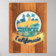 Bonjour, cette seule et drôle de conception représente une planche de surf avec un blazon rétro et sucré de Californie.