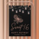 Sweet 16 Rose Gold Butterfly Chic Modern Birthday Poster présente un élégant papillon en or rose avec des lampes à cordes sur un arrière - plan noir avec Sweet 16 en élégant script de calligraphie avec "Happy Birthday" et personnalisé avec votre nom personnalisé ci-dessous. Personnalisez en modifiant le texte dans les zones de texte. Conçu pour vous par ©Evco Studio www.zazzle.com/store/evcostudio