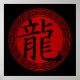 Célébrez l'Année du Dragon avec ce design accrocheur avec un symbole chinois noir (ou kanji japonais) pour dragon entouré d'un cadre rond de style oriental orné sur un arrière - plan rouge et noir. sgb01