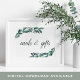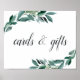 Conçu pour s'adapter à notre collection de mariages Foliage Abondant, cet élégant panneau botanique permet aux clients de savoir où déposer leurs cartes et cadeaux. Personnalisez avec une ligne de texte personnalisé en écriture de script de calligraphie (illustrée par "Cartes et Cadeaux"), encadrée par une verdure d'aquarelle luxuriante et des feuilles eucalyptus.