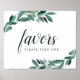 Conçu pour s'adapter à notre collection de mariages Foliage Abondant, cet élégant panneau botanique invitation les invités à prendre une faveur. Personnalisez avec deux lignes de texte personnalisé en calligraphie et en lettres de blocs (avec "Favors; prenez-en une"), encadrées par une verdure d'aquarelle luxuriante et des feuilles d'eucalyptus.