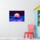 Paysage futuriste rétro et soleil sur les montagnes poster pour les amateurs de Surreal Outrun/Retrowave/Synthwave!