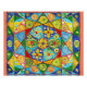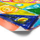 Des motifs géométriques vibrants remplissent l'image, avec des cercles, des triangles et des tourbillons dans un kaléidoscope de couleurs, dont le bleu, le vert, le jaune et le rouge. Le design complexe crée un sentiment de symétrie et d'équilibre.