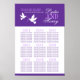 Une partie du mariage met des colombes blanches avec des rubans violets. Modifiez ce tableau de table mariage avec vos propres sièges et les noms des invités. Parfait pour ceux qui aiment la simplicité et le romantisme. Idéal pour les mariages d'église, de style champêtre, de jardin et de registre simple. Uniquement conçu par Sarah Trett.