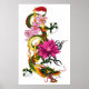 Poster Tatouage de dragon chinois vert gras lotus sarcell