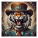Un tigre fantaisiste nommé Terence portant un casquette, une cravate et un rugissement.