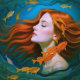 "Thalassa" - Les Femmes Dans L'Eau. Dans cette image colorée de femmes aux beaux-arts dans l'eau, une femme stupéfiante aux cheveux rouges fusionne avec les courants de l'océan. Poisson à travers ses cheveux, symbolisant sa connexion à la mer. Sa présence respire la force et l'inspiration, un témoignage d'une belle représentation résiliente de l'eau de la femme.