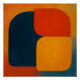 Large indigo overlaps smaller ochre against warm orange haze. Edges dissolve; lines fade. No "this side" or "that side"—only coexistence in teal shadows.