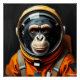A chimpanzee dressed as an astronaut gazes thoughtfully into space.