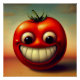 tomate anthropomorphique avec un gros grain exagéré et de grands yeux expressifs.
