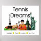 Si vous rêvez d'un jour de jouer, ou même de visiter, à Paris, Londres, Australie ou New York, et de gagner un ou deux Open, alors obtenez ce slogan Tennis Dreams avec un graphique vibrant. Idéal pour le prodige du tennis, le pro du tennis, ou juste pour le fan de tennis.