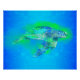 Un tableau numérique d'une tortue de mer hawaïenne en voie de disparition nageant, peint en bleu et vert de l'océan.