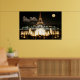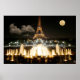 La vue classique du Palais de Chaillot la nuit. La Tour Eiffel baignée de lumières jaunes et encadrée par une lune massive et des fontaines spectaculaires. Un tirage à succès pour compléter n'importe quel décor maison à la perfection.