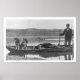 Une photographie classique des efforts documentaires de Frank G. Carpenter en Alaska. Cette affiche commémorative présente une vue d'un trappeur de l'Alaska avec des peaux et des chiens en pirogue, prise en 1906.