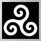 Symbole de Triskelion spirale en noir et blanc.