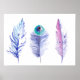 Trois plumes bleues, toutes douces et brillantes dans les couleurs pastel de l'eau. J'adore les plumes. J'ai une petite collection offerte par les oiseaux locaux. Ils sont si forts et pourtant très délicats.