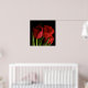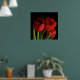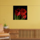 Ce magnifique poster présente un bouquet de tulipes rouge écarlate et de feuilles verts posés sur un pur arrière - plan noir.