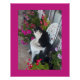 Poster Tuxedo Cat Maroon Dark Pink Cats and Flowers