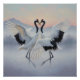 Two elegant Japanese cranes perform a graceful courtship dance, their long necks curved in perfect harmony and wings softly extended in rhythm. The scene captures a moment of balance, unity, and devotion, expressed through fluid movement and refined beauty. Gentle light enhances the delicate textures of their feathers, creating a serene, timeless composition that radiates grace and connection.