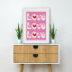 Poster Typographie d'amour rose rétro avec les coeurs rou