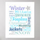 Cette affiche murale de typographie hivernale chère sera l'ajout parfait à votre décor de maison en hiver. Ce design présente de nombreuses choses que vous vivez pendant la saison hivernale, le tout dans une variété de polices et de couleurs gris et bleu.