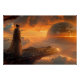 Illustration numérique d'un astronaute regardant une planète à travers la clôture d'un vaisseau spatial.