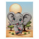 Elephant Cute Baby Happy Cartoon Character course et saut sur African Savannah Landscape. Illustration vectorielle originale Copyright BluedarkArt TheChameleonArt.