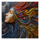 Un portrait abstrait qui capture la vue latérale d'une femme. Son visage est légèrement levé, et ses cheveux longs et denses sont représentés dans une danse fascinante de vol, de tissage et de curling dans un style abstrait, sur un granit gris ombragé. Des couleurs vives et des lignes abstraites se mêlent dans une symphonie artistique, créant une oeuvre d'art vraiment magnifique.