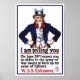This vintage World War I poster features Uncle Sam standing with his hands on his hips. It reads, "I am telling you, on June 28th I expect you to enlist in the army of war savers to back up my army of fighters. W.S.S. Enlistment". Celebrate American and WW1 History with this digitally restored vintage war poster product from The War Is Hell Store.