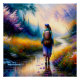 Une randonneuse emprunte un sentier sinueux à travers une forêt luxuriante. Le soleil brille à travers les arbres, projetant des ombres applaudies sur le sol. La femme porte un sac à dos et des bottes de randonnée. Elle a un regard déterminé sur son visage, comme si elle était prête à affronter tout ce qui lui arrive. Cet art numérique généré par l'IA est une représentation magnifique et inspirante de la joie du randonnée et de l'exploration des grands espaces.