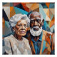 This geometric-style piece portrays an elderly couple with love and serenity, using colorful triangles in warm and cool tones. The interwoven shapes symbolize a shared life, while vibrant colors highlight the strength and harmony of their connection over time.
