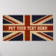 Poster d'Union Jack personnalisé ~ Ajoutez votre propre texte à cette affiche de covoiturage à look vintage stylisé. Placez un nom ou un slogan pour un grand cadeau unique ! Modifiez facilement le style de texte, la police et la couleur que vous désirez.