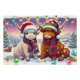 Vaches des Highlands en Winter Wonderland - Art de Noël à la manga avec Casquettes festifs et écharpes Cette charmante illustration de style manga présente deux vaches des Highland, une grande et une petite, habillées de casquettes et de foulards d'hiver festifs. Situé dans un paysage enneigé, il est entouré de lumières de Noël colorées et de décorations de vacances, créant une scène de vacances confortable et chaleureuse. Idéale pour la décoration de Noël, cette oeuvre d'art reflète l'esprit doux de la saison avec une touche de vache Highland unique.