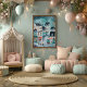 Poster Vecindario Encantador: Paisaje Folk y Naive Colori