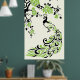Poster vert noir paon et fleurs de cerisiers