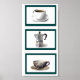 Cette belle affiche montre une photo d'une cafetière à l'italienne et deux photos de tasse de café différentes. Les amateurs de café ou de thé apprécieront cet endroit pour une cuisine ou un coin salon.