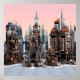 Rendu en 3D d'une ville futuriste de science-fiction sur un arrière - plan de ciel rose