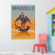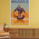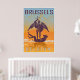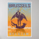 Poster vintage de Bruxelles en orange et bleu texturé arrière - plan avec skyiline en blanc