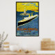 Affiche vintage "Holland Amerika Linie" montrant l'un de leurs navires du début du XXe siècle et la Statue de la Liberté avec une carte de l'est des Etats-Unis montrant les villes et les itinéraires depuis leur terminus transatlantique de New York.