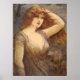 Un joli poster Vintage de dame avec une belle dame aux longs cheveux de gingembre et aux yeux âmes habillés en couleur terre robe ou robe de dentelle vintage.