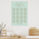 L'élégante carte de sièges de mariage est dotée d'un monogramme des noms de mariée et de mariée et de la date du mariage, d'un texte modèle personnalisé pour les numéros de table et les noms d'invités. Le bleu de la menthe et l'or ancien.