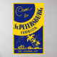 C. 1925 imprimé qui dit "Venez à St. Petersburg Floride - L'État Sunshine" et représente les gens profitant d'une plage ensoleillée.