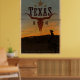 Coucher de soleil avec cowboy avec le Texas et le crâne de bétail longhorne de notre collection de cowboys du Texas