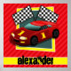 Cool, voiture de course enfant colorée, rouge, jaune, drapeau à damiers, conception de course automobile sur motif Scarlet Red Stripes. Un cadeau parfait pour bébé, tout-petits, enfants, enfants, ados ou adultes ! Personnalisez le modèle de conception en ajoutant le nom ou le texte personnalisé d'un enfant. Visitez notre magasin, Birthday Party House, pour plus de grands produits pour garçons personnalisables!