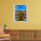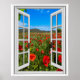 Des pavots rouges vifs dans un champ, une fausse scène de fenêtre, pour une pièce sans fenêtre ou un mur de bureau. Illusion d'optique réaliste et amusante affiche pittoresque pour un bureau ou un mur d'étude.