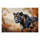 Un majestueux jaguar émerge parmi le feuillage aux tons chauds, dégageant force et mystère. Son regard perçant révèle l'essence indomptée de la nature, transformant l'oeuvre en hommage au pouvoir animal et à la beauté vivante de la vie sauvage.
